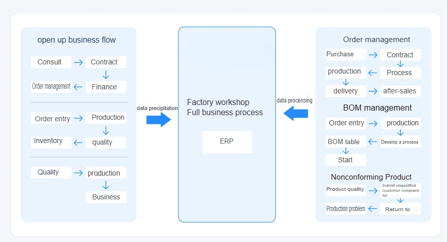In the actual use process, it has helped the enterprise forge the collection of key data, resource integration and utilization from purchase order entry → contract approval → process design → production → shipment → after-sales, achieving closed-loop management of the entire business process.