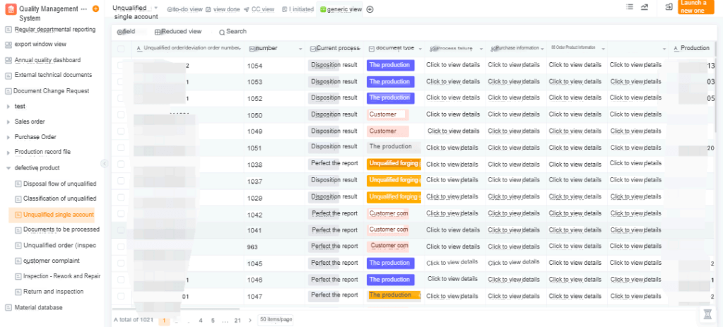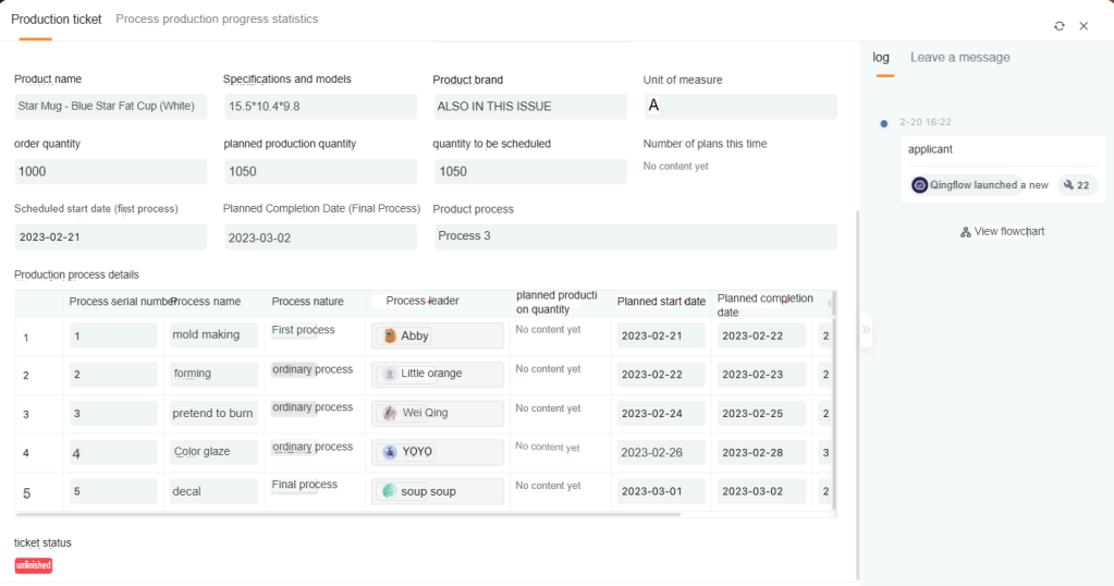 At the same time, the quality department will also complete product quality inspections based on the inspection standards and processes in the system. If any non-conforming products are produced, business personnel will directly submit the non-conforming product list/customer complaint form online, and the products will be returned to the production line. As the entire production process is recorded on the light flow, production problems can be traced and the specific link where the problem occurred can be quickly identified.